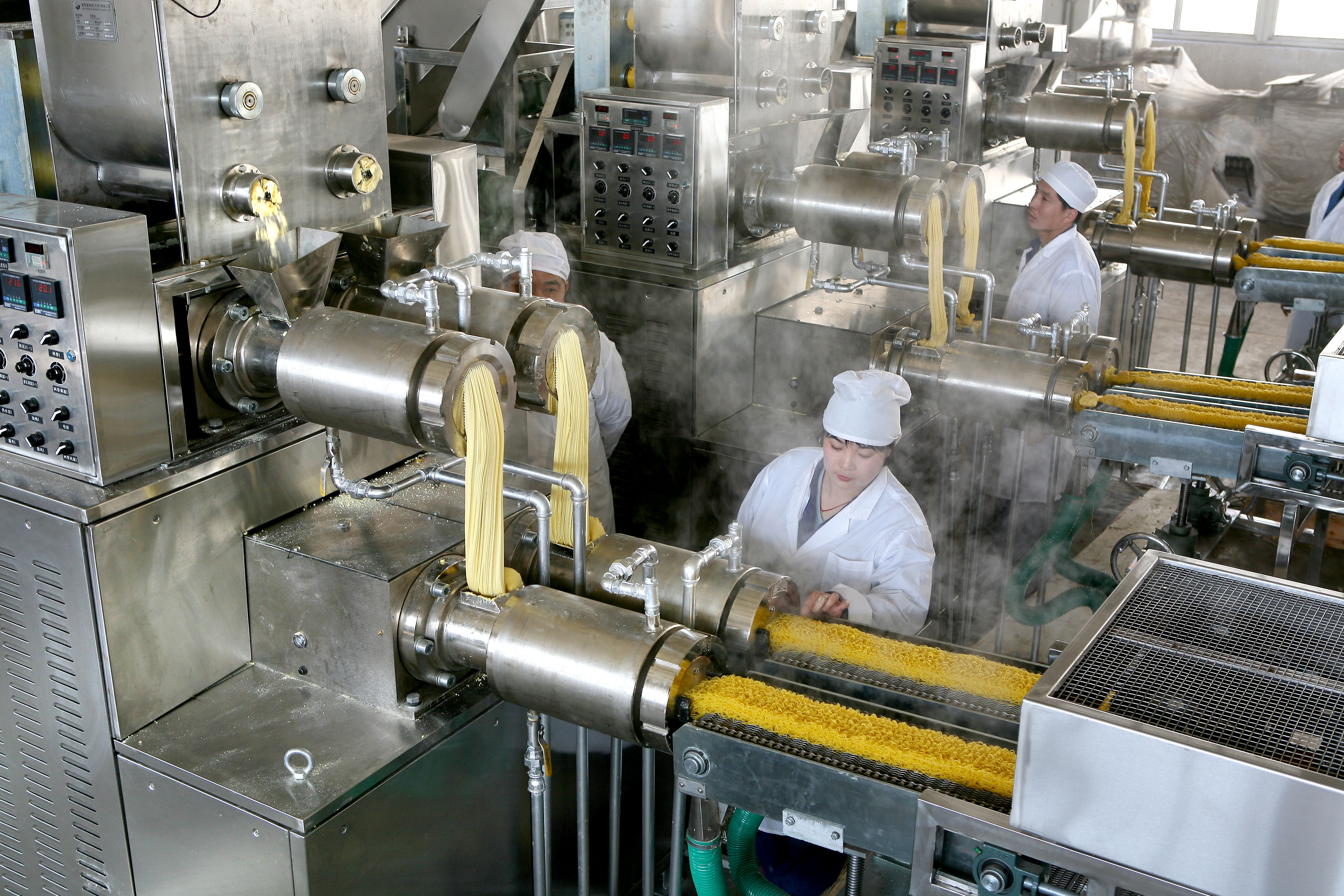 The series of the automatic non-fried instant noodle production line which is widely used for process grains ramen noodles, such as instant corn noodle, instant soba noodle, instant oats noodle or functionality compound food for special groups. It retains the nature flavor and nutrition of the raw material. It could be served for boiling and cooking with smooth and firm tastes. It achieves three demands for food nutrition, convenience and delicacy.